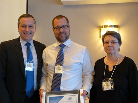 M. Éric Dion (Conseil des écoles fransaskoises) accompagné de M. Éric Martel, président du REFAD, et de Mme Carolle Roy, vice-présidente.